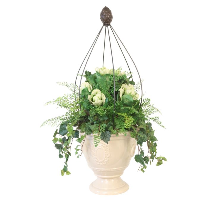Luxury Artificial Kale Mixed with Maiden Hair Fern and Ivy in Cream Container. Item ships fully assembled and arrives as shown.